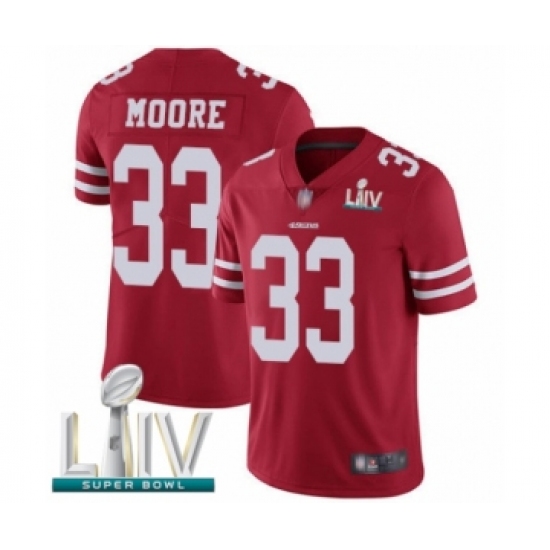 Men's San Francisco 49ers #33 Tarvarius Moore Red Team Color Vapor Untouchable Limited Player Super Bowl LIV Bound Football Jersey