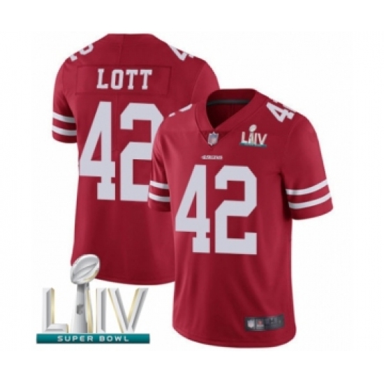 Men's San Francisco 49ers #42 Ronnie Lott Red Team Color Vapor Untouchable Limited Player Super Bowl LIV Bound Football Jersey