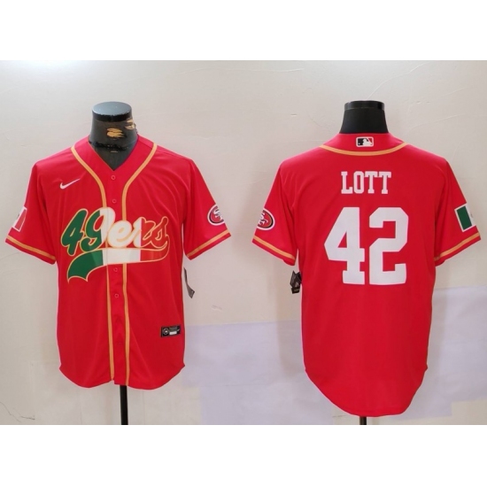 Men's San Francisco 49ers #42 Ronnie Lott Red With Patch Cool Base Stitched Baseball Jersey