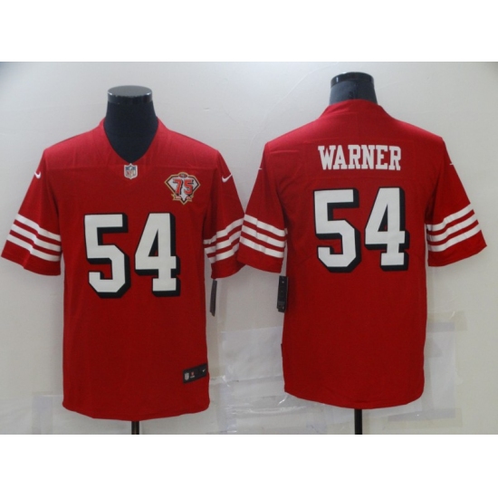 >Men's San Francisco 49ers #54 Fred Warner Red 2021 75th Anniversary Vapor Untouchable Limited Jersey