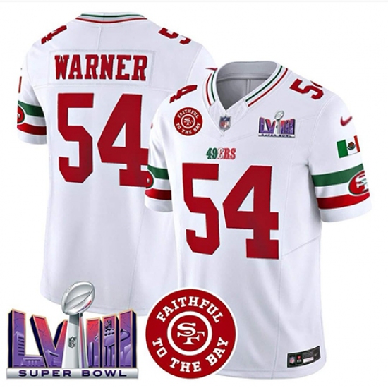Men's San Francisco 49ers #54 Fred Warner White 2023 F U S E And Faithful To The Bay Stitched Football Jersey