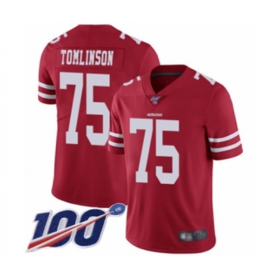 Men's San Francisco 49ers #75 Laken Tomlinson Red Team Color Vapor Untouchable Limited Player 100th Season Football Jersey