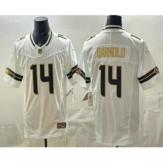 >Men's Seattle Seahawks #14 Sam Darnold Limited White Gold FUSE Vapor Jersey