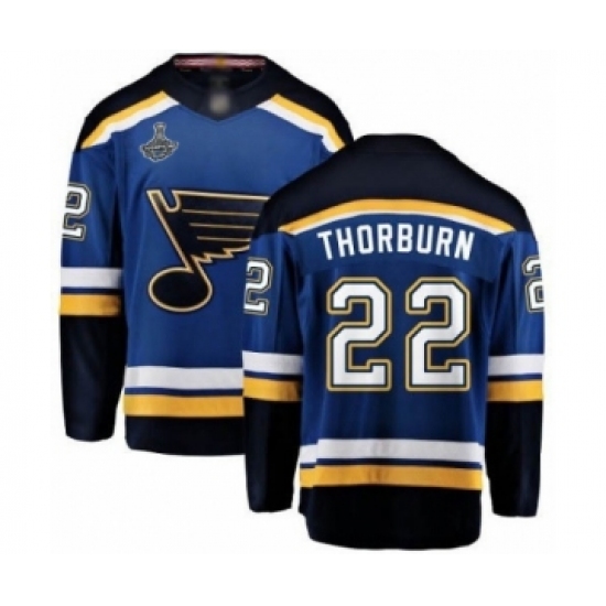 >Men's St. Louis Blues #22 Chris Thorburn Fanatics Branded Royal Blue Home Breakaway 2019 Stanley Cup Champions Hockey Jersey