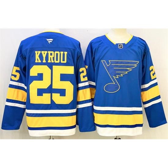 >Men's St. Louis Blues #25 Jordan Kyrou Blue 2025 Stitched Hockey Jersey