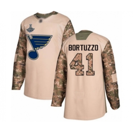 >Men's St. Louis Blues #41 Robert Bortuzzo Authentic Camo Veterans Day Practice 2019 Stanley Cup Champions Hockey Jersey