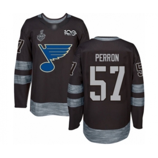 >Men's St. Louis Blues #57 David Perron Authentic Black 1917-2017 100th Anniversary 2019 Stanley Cup Final Bound Hockey Jersey