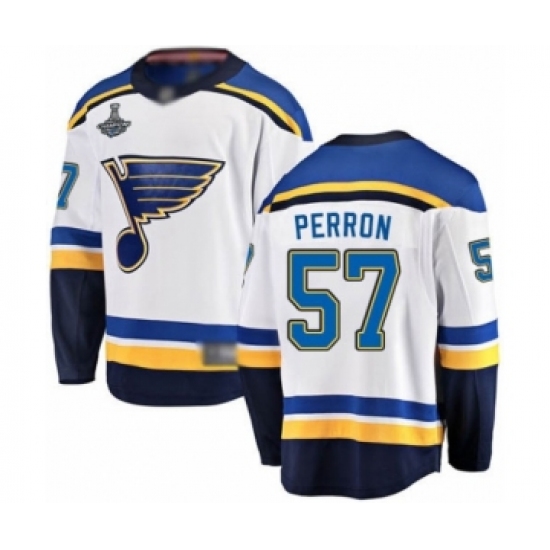 Men's St. Louis Blues #57 David Perron Fanatics Branded White Away Breakaway 2019 Stanley Cup Champions Hockey Jersey