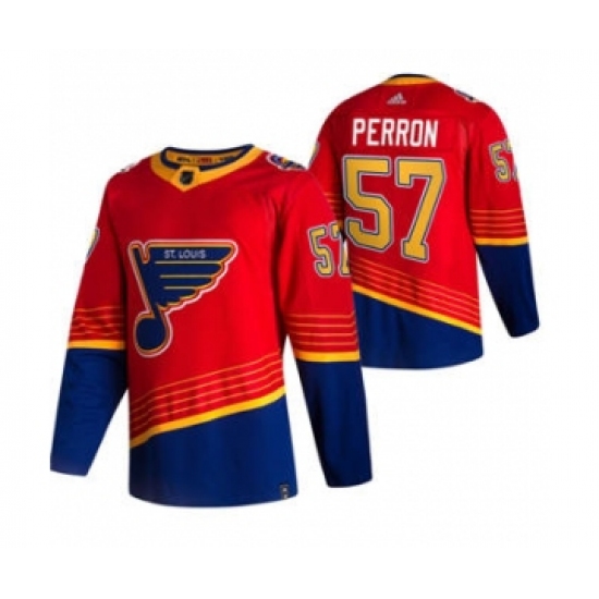 >Men's St. Louis Blues #57 David Perron Red 2020-21 Reverse Retro Alternate Hockey Jersey
