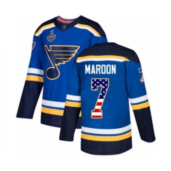 Men's St. Louis Blues #7 Patrick Maroon Authentic Blue USA Flag Fashion 2019 Stanley Cup Final Bound Hockey Jersey