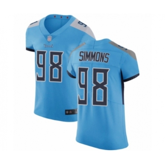 >Men's Tennessee Titans #98 Jeffery Simmons Light Blue Alternate Vapor Untouchable Elite Player Football Jersey