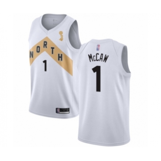 >Men's Toronto Raptors #1 Patrick McCaw Swingman White 2019 Basketball Finals Champions Jersey - City Edition
