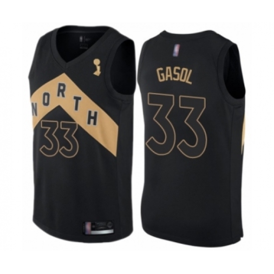 Men's Toronto Raptors #33 Marc Gasol Swingman Black 2019 Basketball Finals Champions Jersey - City Edition