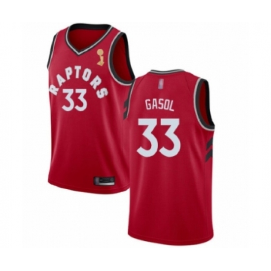 Men's Toronto Raptors #33 Marc Gasol Swingman Red 2019 Basketball Finals Champions Jersey - Icon Edition