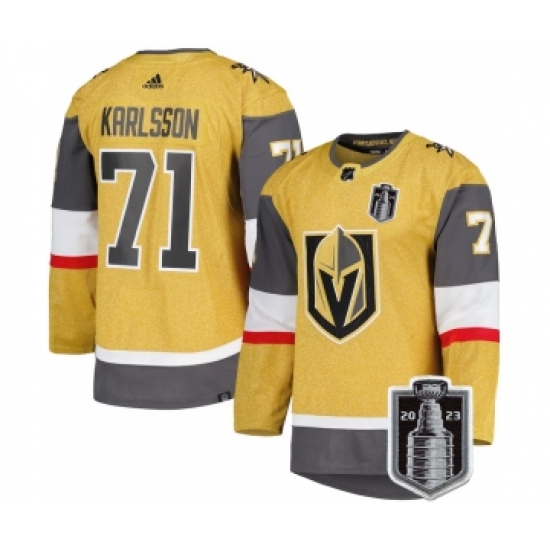 >Men's Vegas Golden Knights #71 William Karlsson Gold 2023 Stanley Cup Final Stitched Jersey