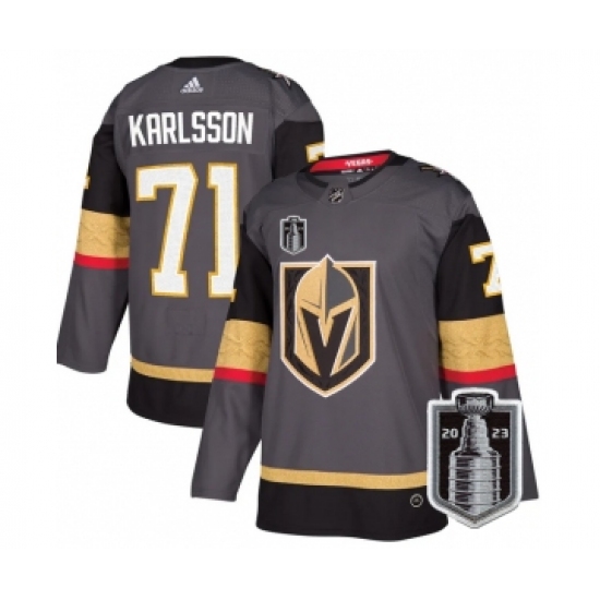 Men's Vegas Golden Knights #71 William Karlsson Gray 2023 Stanley Cup Final Stitched Jersey