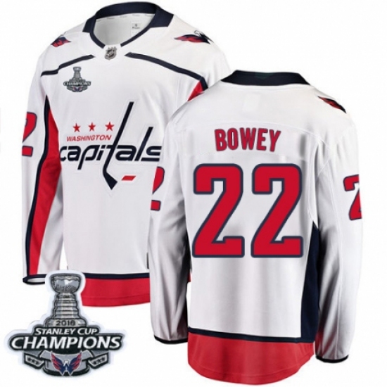 Men's Washington Capitals #22 Madison Bowey Fanatics Branded White Away Breakaway 2018 Stanley Cup Final Champions NHL Jersey