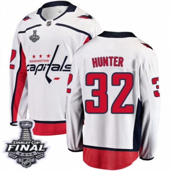 Men's Washington Capitals #32 Dale Hunter Fanatics Branded White Away Breakaway 2018 Stanley Cup Final NHL Jersey