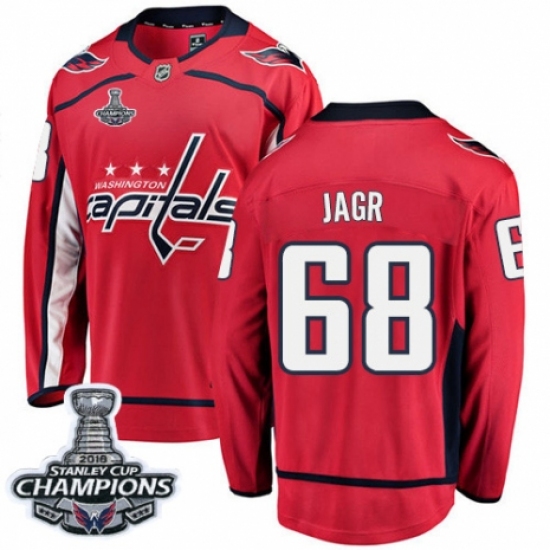 Men's Washington Capitals #68 Jaromir Jagr Fanatics Branded Red Home Breakaway 2018 Stanley Cup Final Champions NHL Jersey