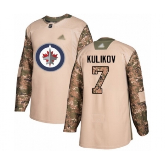>Men's Winnipeg Jets #7 Dmitry Kulikov Authentic Camo Veterans Day Practice Hockey Jersey