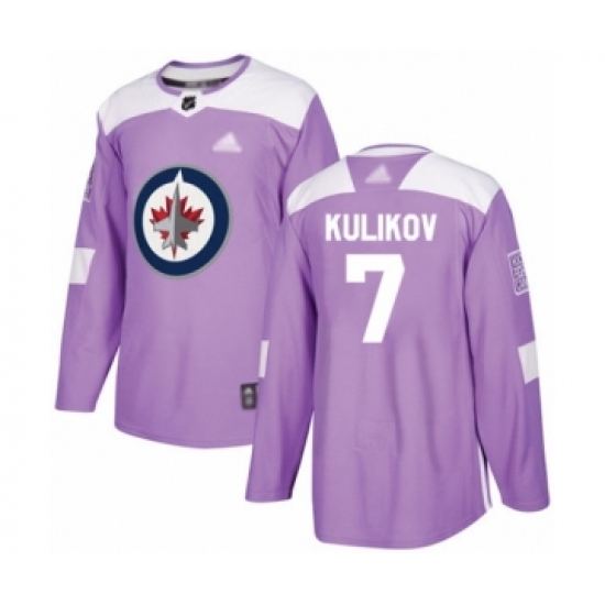 Men's Winnipeg Jets #7 Dmitry Kulikov Authentic Purple Fights Cancer Practice Hockey Jersey