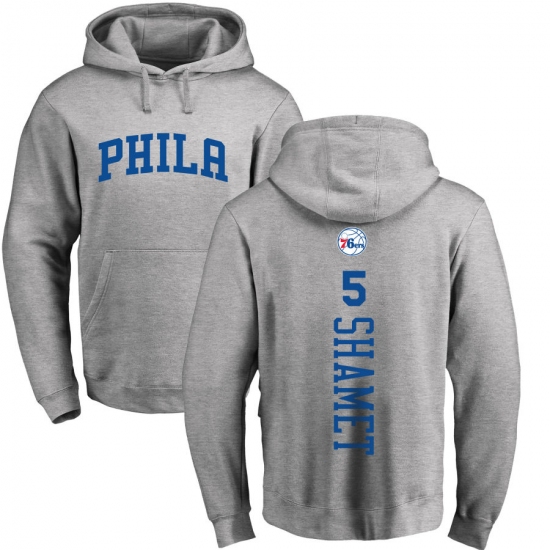 >NBA Nike Philadelphia 76ers #5 Landry Shamet Ash Backer Pullover Hoodie