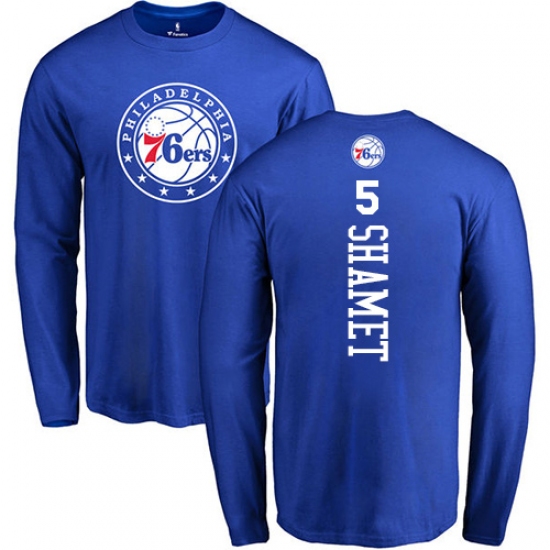 >NBA Nike Philadelphia 76ers #5 Landry Shamet Royal Blue Backer Long Sleeve T-Shirt