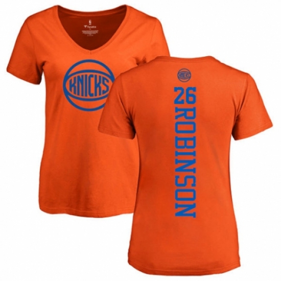 >NBA Women's Nike New York Knicks #26 Mitchell Robinson Orange One Color Backer Slim-Fit V-Neck T-Shirt