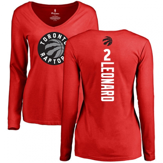 >NBA Women's Nike Toronto Raptors #2 Kawhi Leonard Red Backer Long Sleeve T-Shirt