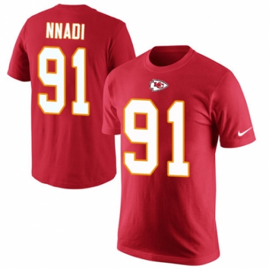 NFL Nike Kansas City Chiefs #91 Derrick Nnadi Red Name & Number Logo T-Shirt