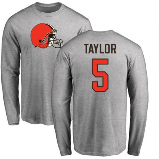 >NFL Nike Cleveland Browns #5 Tyrod Taylor Ash Name & Number Logo Long Sleeve T-Shirt