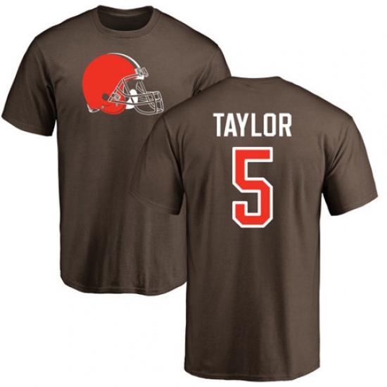 >NFL Nike Cleveland Browns #5 Tyrod Taylor Brown Name & Number Logo T-Shirt
