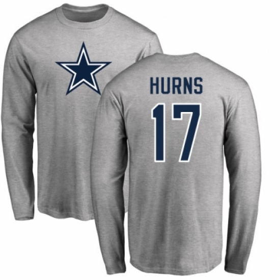 >NFL Nike Dallas Cowboys #17 Allen Hurns Ash Name & Number Logo Long Sleeve T-Shirt