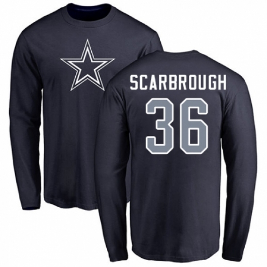>NFL Nike Dallas Cowboys #36 Bo Scarbrough Navy Blue Name & Number Logo Long Sleeve T-Shirt