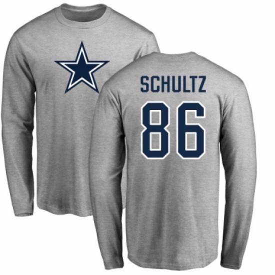 >NFL Nike Dallas Cowboys #86 Dalton Schultz Ash Name & Number Logo Long Sleeve T-Shirt