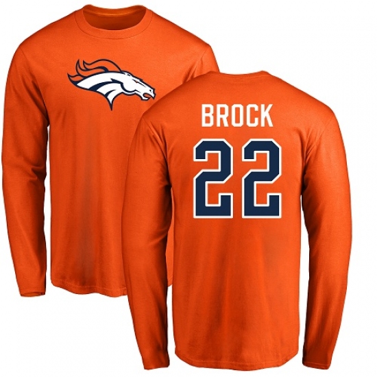 >NFL Nike Denver Broncos #22 Tramaine Brock Orange Name & Number Logo Long Sleeve T-Shirt