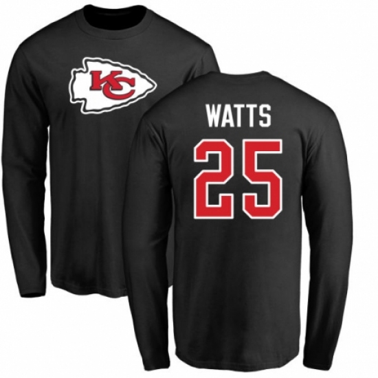 >NFL Nike Kansas City Chiefs #25 Armani Watts Black Name & Number Logo Long Sleeve T-Shirt