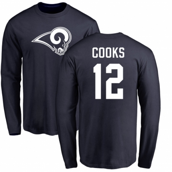 >NFL Nike Los Angeles Rams #12 Brandin Cooks Navy Blue Name & Number Logo Long Sleeve T-Shirt