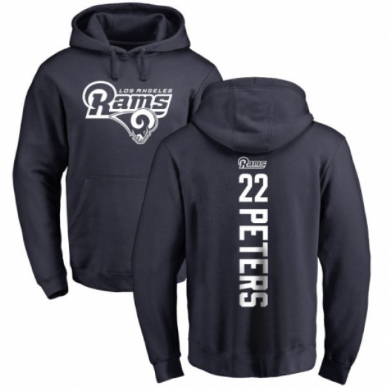 >NFL Nike Los Angeles Rams #22 Marcus Peters Navy Blue Backer Pullover Hoodie