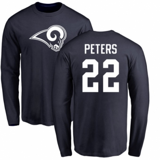 NFL Nike Los Angeles Rams #22 Marcus Peters Navy Blue Name & Number Logo Long Sleeve T-Shirt