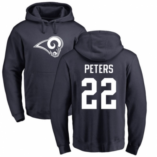 NFL Nike Los Angeles Rams #22 Marcus Peters Navy Blue Name & Number Logo Pullover Hoodie
