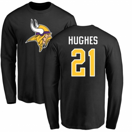 >NFL Nike Minnesota Vikings #21 Mike Hughes Black Name & Number Logo Long Sleeve T-Shirt