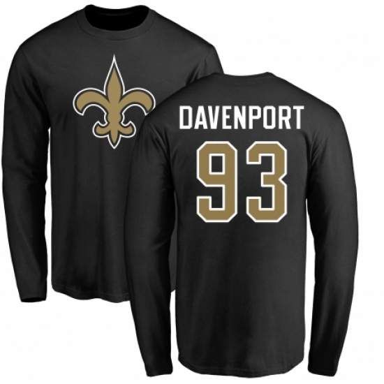 NFL Nike New Orleans Saints #93 Marcus Davenport Black Name & Number Logo Long Sleeve T-Shirt