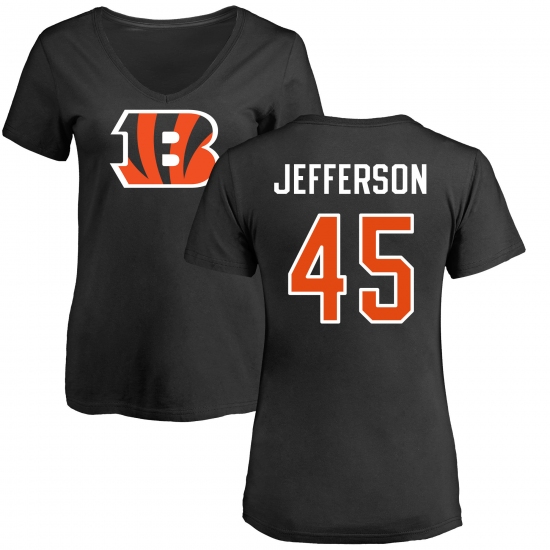 >NFL Women's Nike Cincinnati Bengals #45 Malik Jefferson Black Name & Number Logo T-Shirt