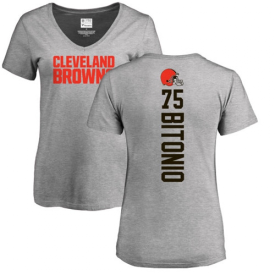 >NFL Women's Nike Cleveland Browns #75 Joel Bitonio Ash Backer V-Neck T-Shirt