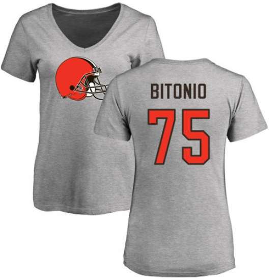 >NFL Women's Nike Cleveland Browns #75 Joel Bitonio Ash Name & Number Logo T-Shirt