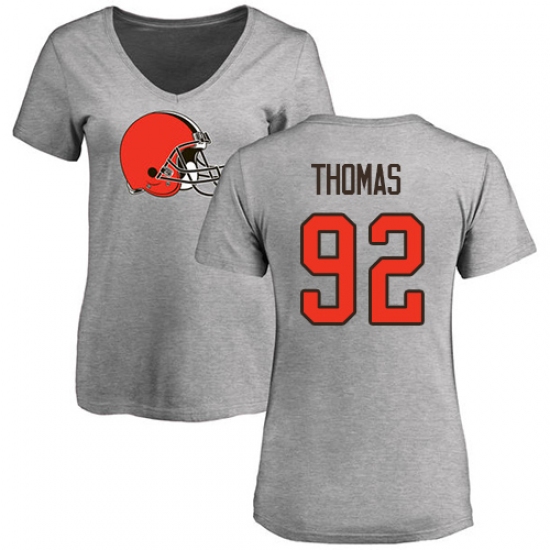 NFL Women's Nike Cleveland Browns #92 Chad Thomas Ash Name & Number Logo T-Shirt