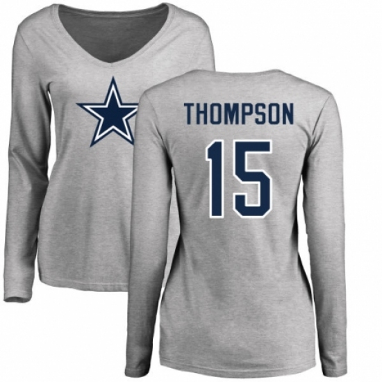 NFL Women's Nike Dallas Cowboys #15 Deonte Thompson Ash Name & Number Logo Slim Fit Long Sleeve T-Shirt