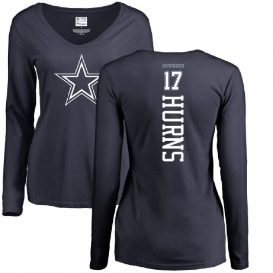 NFL Women's Nike Dallas Cowboys #17 Allen Hurns Navy Blue Backer Slim Fit Long Sleeve T-Shirt