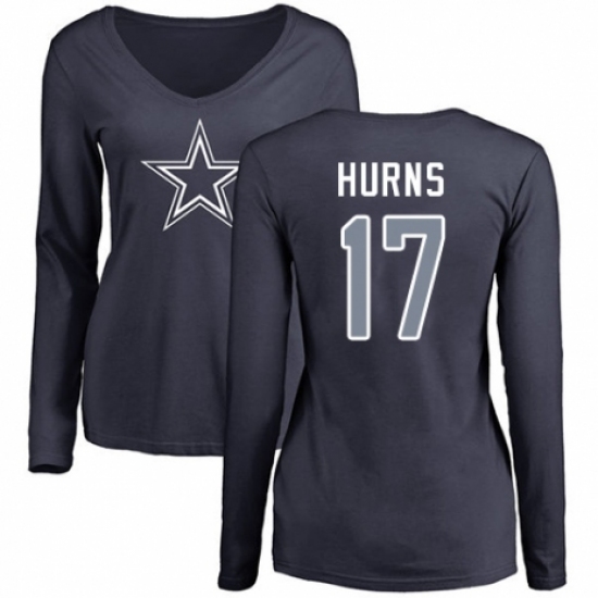NFL Women's Nike Dallas Cowboys #17 Allen Hurns Navy Blue Name & Number Logo Slim Fit Long Sleeve T-Shirt